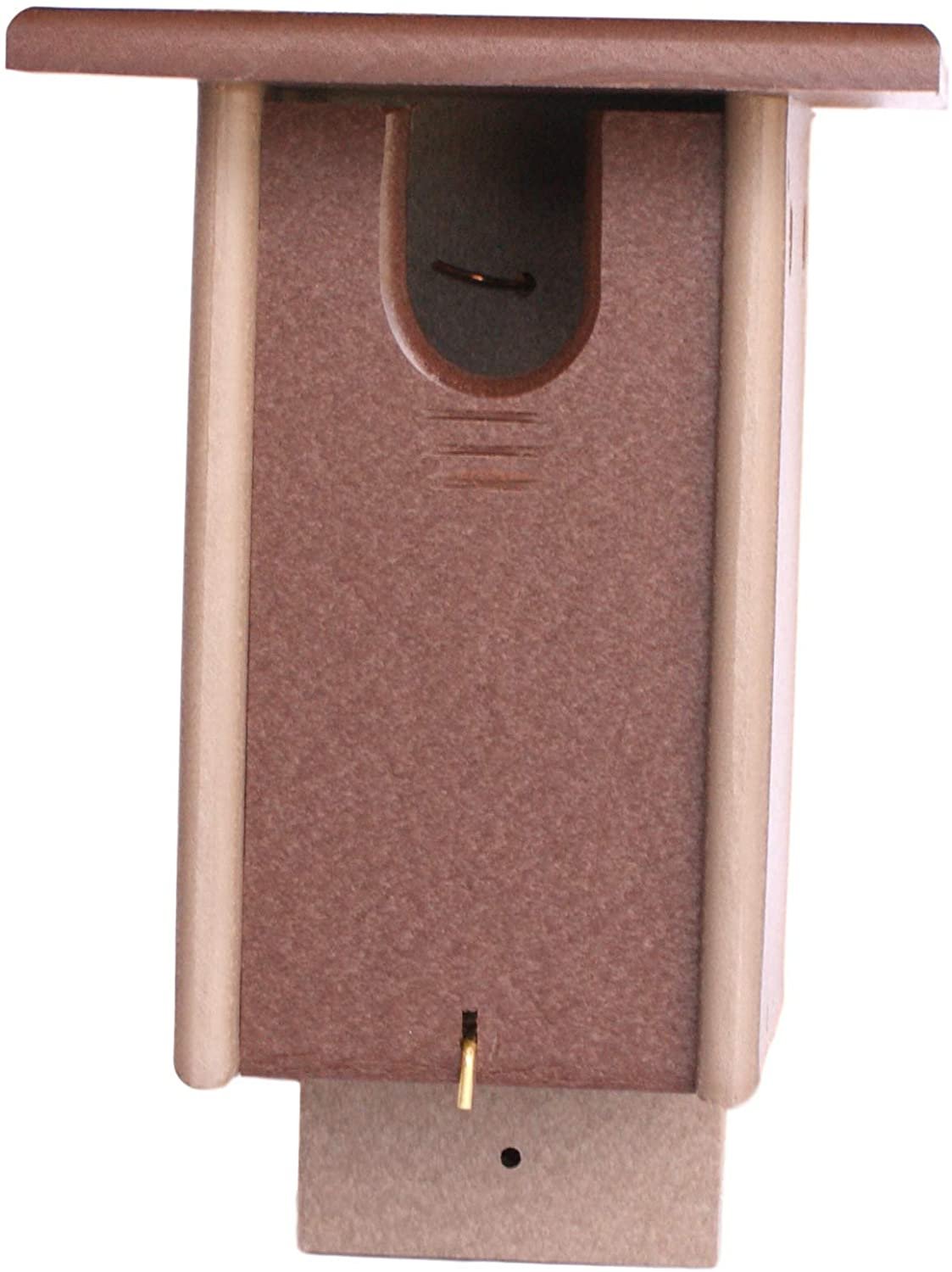 Invite your blue bird friends to enjoy the comforts of this cute bluebird house! This unique Amish-made bird house is perfect for attracting bluebirds to share your backyard. Our Amish-made bluebird house is crafted with durable poly "lumber" which is made from 100% post-consumer recycled plastic for ultimate environment stewardship! Also, poly lumber is fade-resistant, mildew-resistant, and rot-resistant to keep you enjoying the bluebirds for a lifetime. The bluebird house features a front door that opens for ease of cleaning, 4 ventilation holes and 4 drainage holes to keep the birds nice and dry, and 2 predrilled holes for mounting the bird house on a post or tree. Choose from 4 color combinations for the perfect accent to your yard or garden. The dimensions of the blue bird house are 7"L by 7"W by 11"L and the hole is 1.5" W by 2"H.